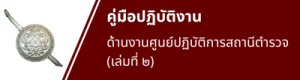 คู่มือหรือมาตรฐานการปฏิบัติงาน ตามภารกิจของแต่ละงาน ได้แก่ งานอำนวยการ งานป้องกันปราบปราม งานจราจร งานสืบสวน และงานสอบสวน และข้อมูลอื่นๆ ที่เกี่ยวข้อง ที่ใช้สำหรับการปฏิบัติหน้าที่